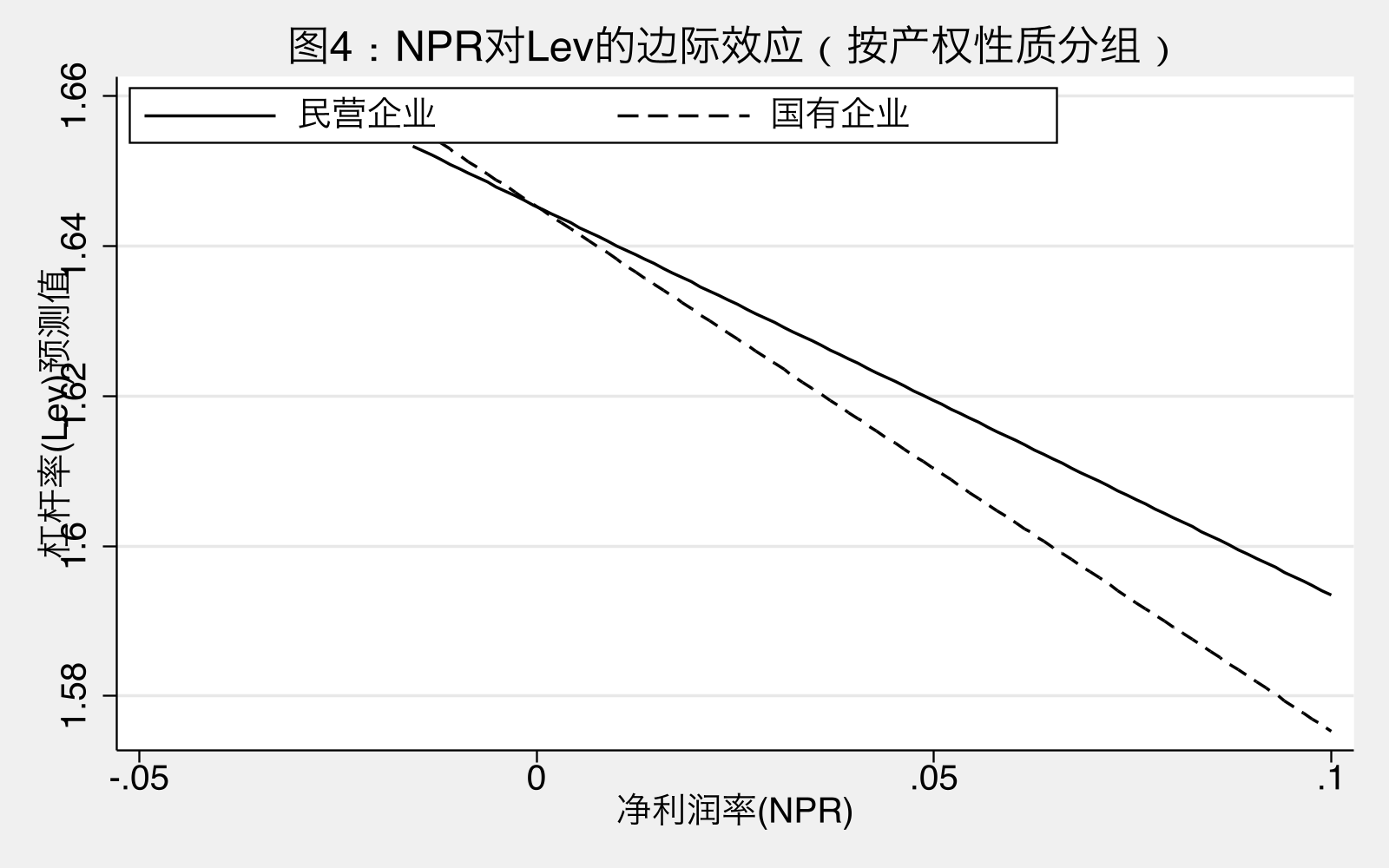 判定:国企与民企的 NPR-Lev 斜率在 5% 水平存在显著差异。