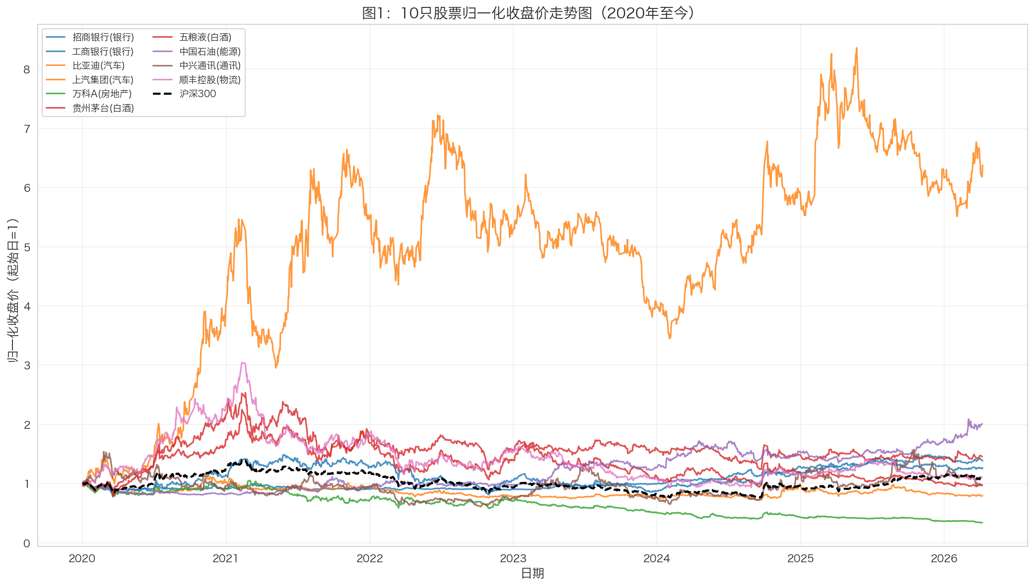 3.3.1 图1:归一化收盘价走势图